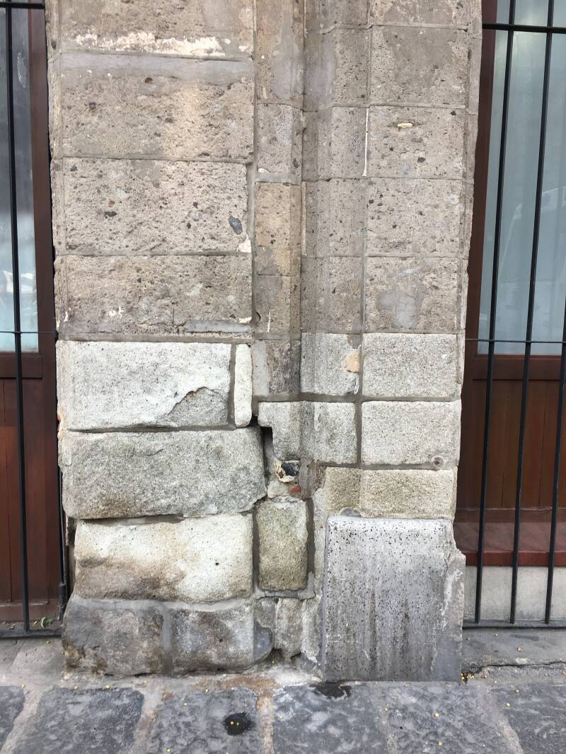 Se realizaron trabajos de reintegración de piezas dañadas de cantera gris de Los Remedios, mediante la colocación de injertos tallados a mano, fijados con sistemas tradicionales y materiales compatibles. Las nuevas piezas fueron alineadas y ajustadas cuidadosamente para integrarse de manera armónica con los elementos originales.